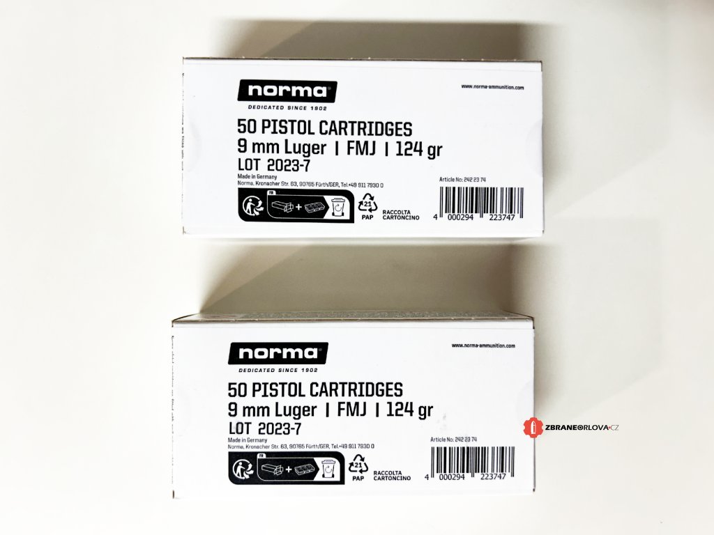 Střelivo značky Norma, které je určeno zejména pro sportovní střelbu. Střela 8 g (124 gr). Cena za kus je 6,2 Kč, baleno po 50 kusech.