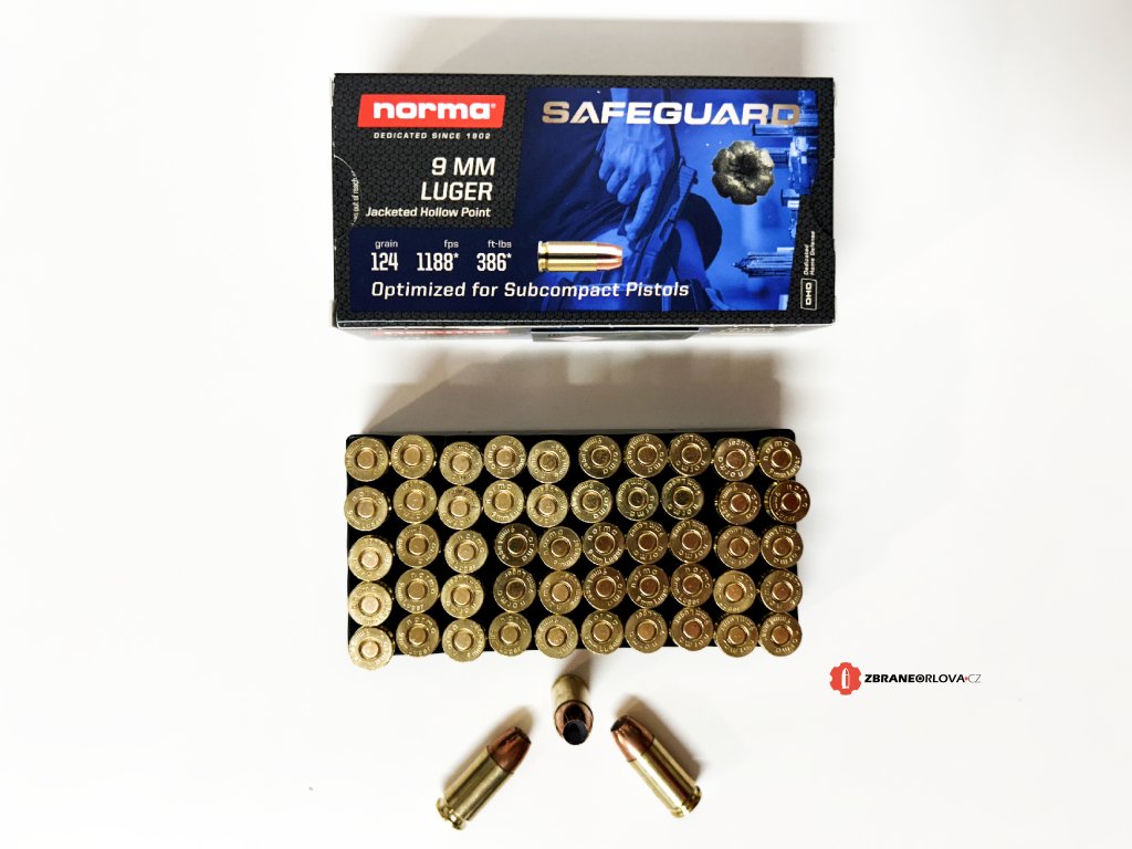 Střelivo značky Norma, které je určeno zejména pro osobní ochranu. Střela JHP o váze 8 g (124 gr). Střelivo je optimalizováno pro pistole v kompaktních rozměrech. Cena za kus je 10 Kč, baleno po 50 kusech.