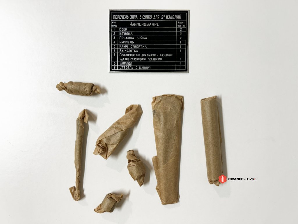 Originální sada náhradních dílů pancéřovek RPG7. Sady jsou většinou nepoužité. Skladem máme sady z výzbroje několika armád.