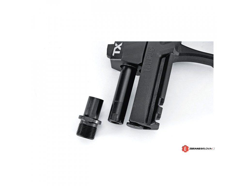 Balení obsahuje: pistoli, 2x 16 ranný zásobník, nabíječku, adaptér pro montáž tlumiče hluku se závitem 1/2"-28 UNEF.