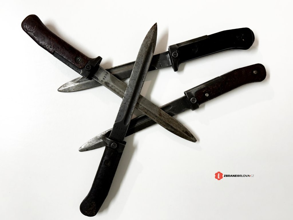 Bodáky jsou v nepoužitém stavu, mohou nést stopy po dlouhodobém skladování. Pochva není součástí dodávky.