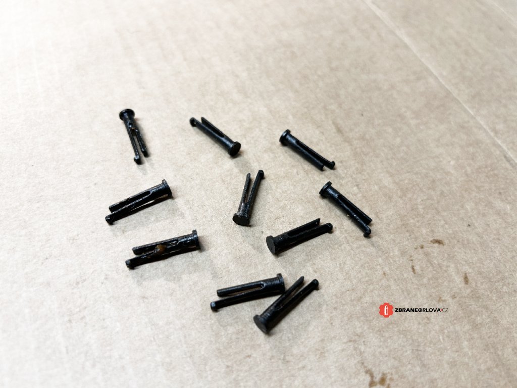 Nepoužité pojistné kolíky čepů vypouštění zásobníků pušek vz.58.